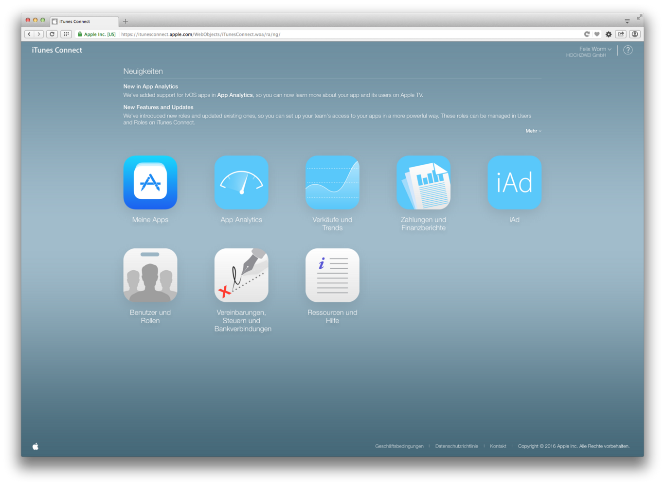 - Bei iTunes Connect anmelden: https://itunesconnect.apple.com/