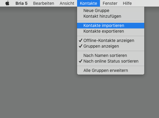 - Oben an der Menüleiste über Kontakte auf "Kontakte Importieren" klicken.