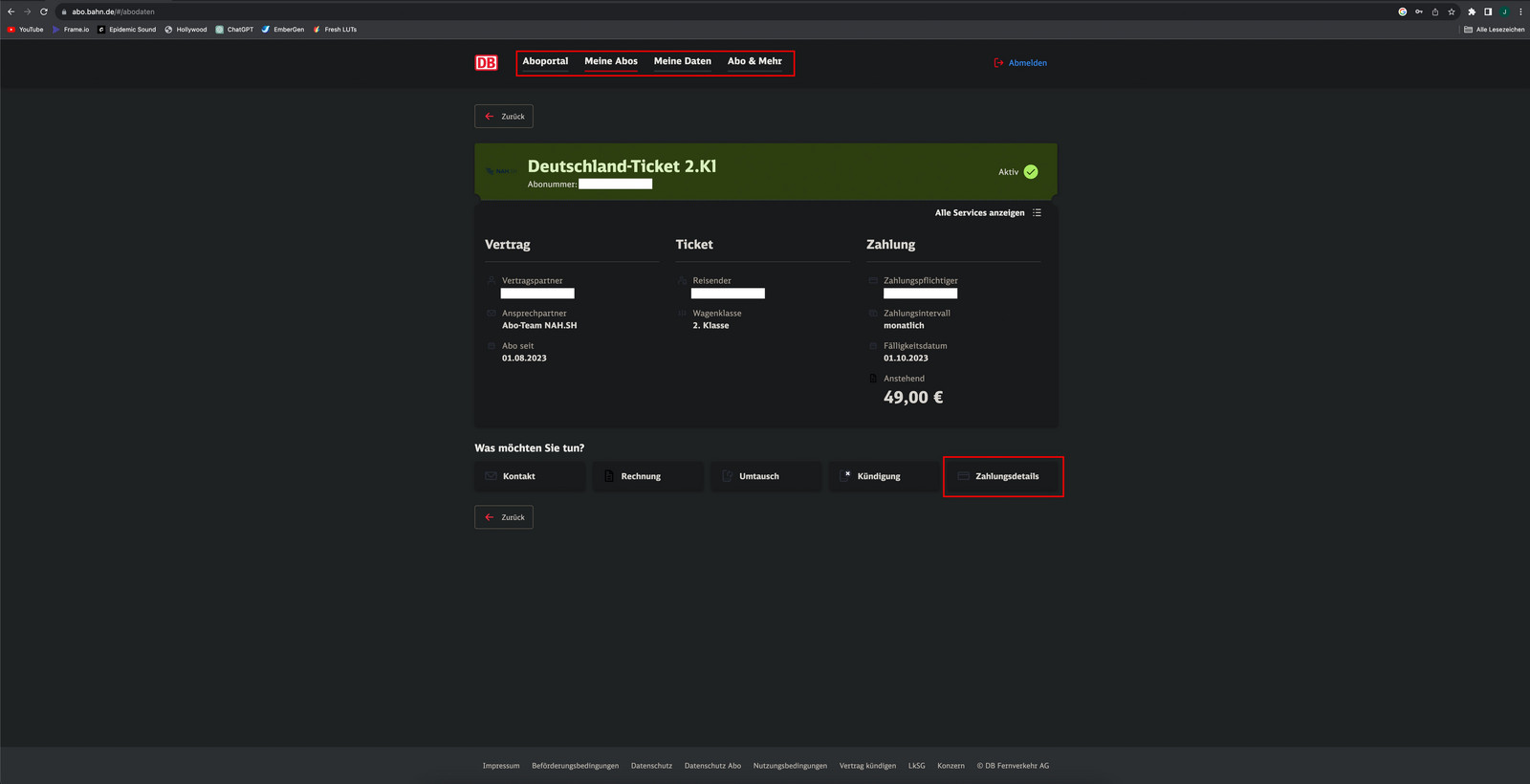 Ist eine Bezuschussung offiziell genehmigt, erwerben wir eigenständig das Deutschlandticket 2. Klasse und schicken monatlich eigenständig per E-Mail bis zum 10. eines jeden Monats an personal@hoch2.de mit dem Betreff "Deutschlandticket" unsere aktuelle PDF-Rechnung des jeweiligen Monats als Nachweis für die Gehaltsabrechnung.
