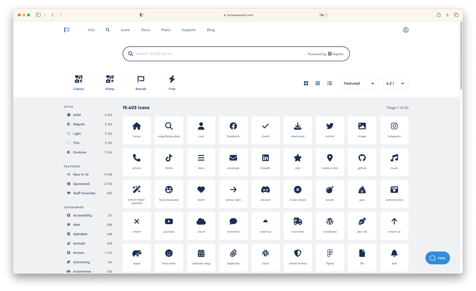 - Jeweils 5 unterschiedliche Schnitte pro Icon: Solid, Regular, Light, Thin, Duotone + 1 Brand-Schnitt für Logos (Facebook, Instagram etc.)