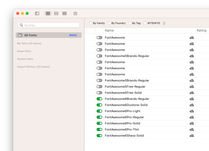 - Der Icon-Font ist im Font Agent installiert und kann einfach aktiviert werden.
