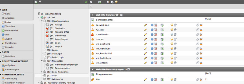 Es gibt ein Test-Account welche die verschiedenen Windparks zugeordnet werden kann.