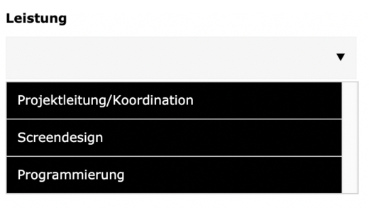 Projekt: Hier kann man ein entsprechendes Projekt auswählen, hat man eins ausgewählt, laden im nächsten Feld (Realisierung), alle Realisierungen, die diesem Projekt zugeordnet sind.