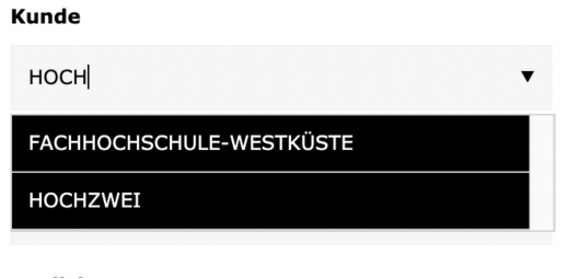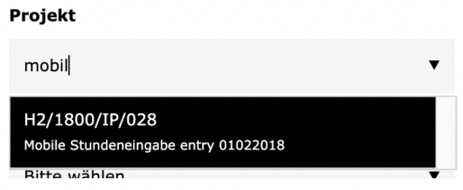 Kunde: Hier wählt man zuerst einen Kunden aus, diese und alle weiteren Eingabefelder haben eine autocomplete Funktion. Hat man einen entsprechenden Kunden ausgewählt, lädt das Tool im nächsten Feld (Projekt), alle Projekte, die diesem Kunden zugewiesen sind.