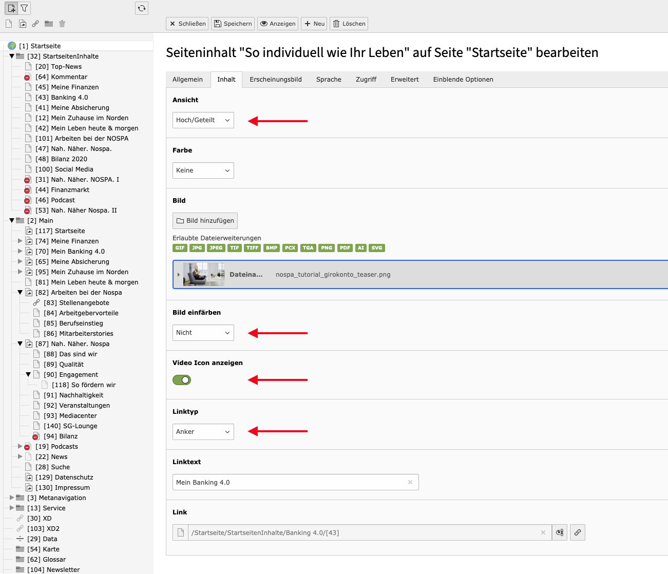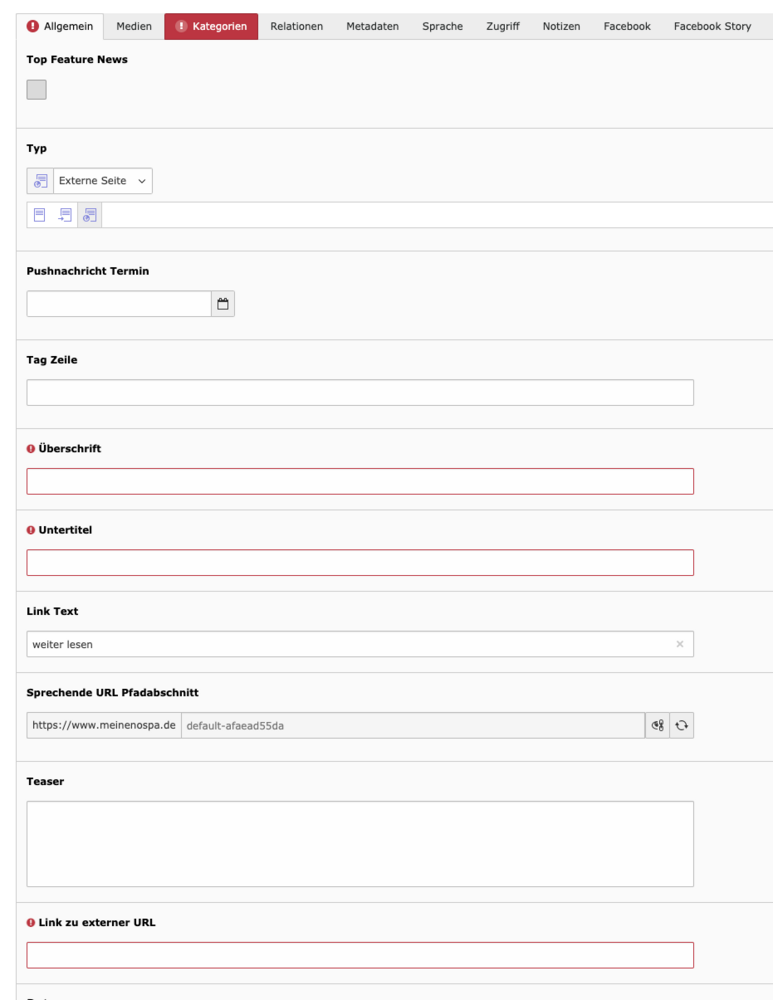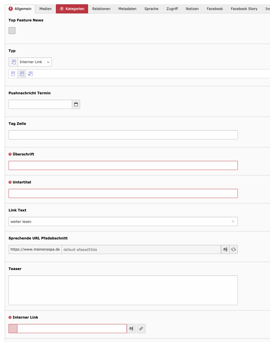Soll ein Beitrag zusätzlich als Einstiegskacheln auf der Startseite erscheinen, muss dies separat gepflegt werden. Bitte beachten: Dieser Bereich soll nicht erweitert werden, d. h. ein neuer Teaser ersetzt immer einen bereits bestehenden – im Idealfall aus der gleichen Rubrik, damit immer alle Rubriken vertreten sind!