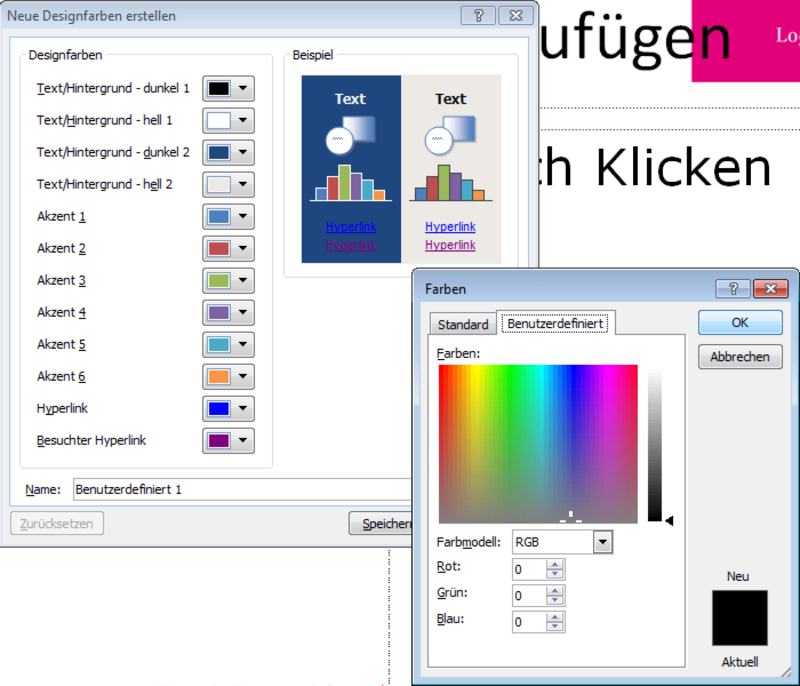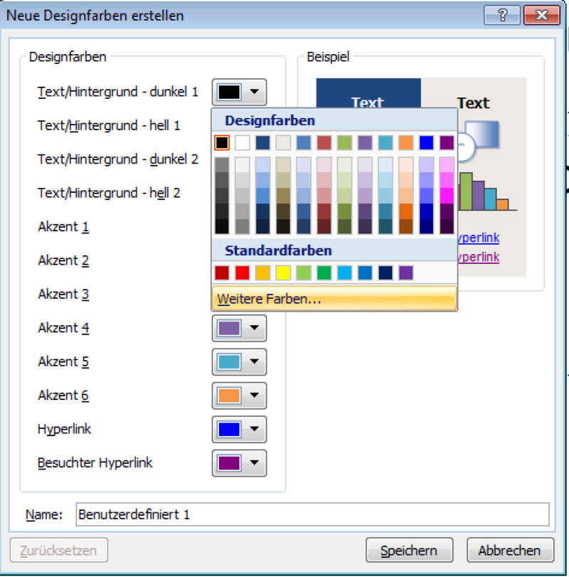 Beim Klick auf Schriftarten/Neue Designschriftarten erstellen anwählen, hier lassen sich jetzt Schriftarten für Headline und Fließtext vordefinieren.