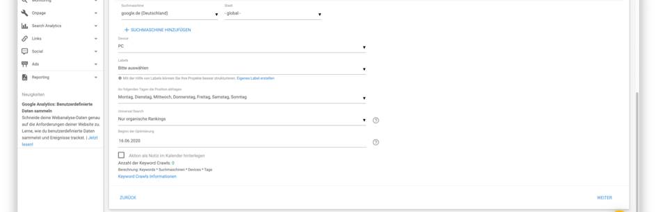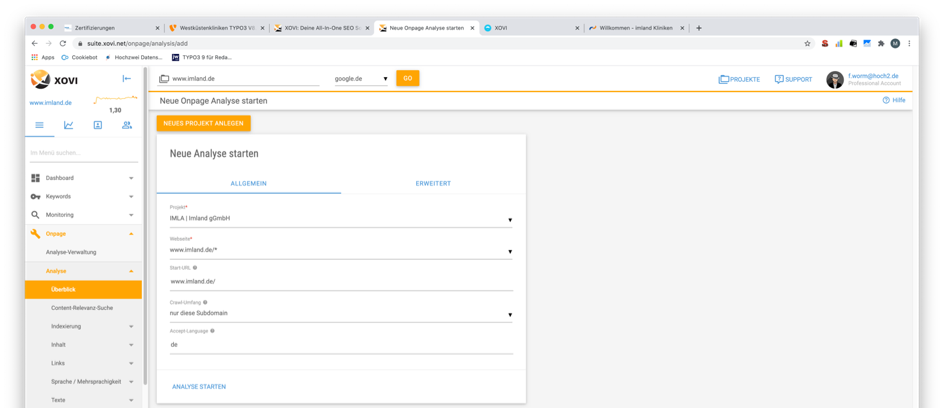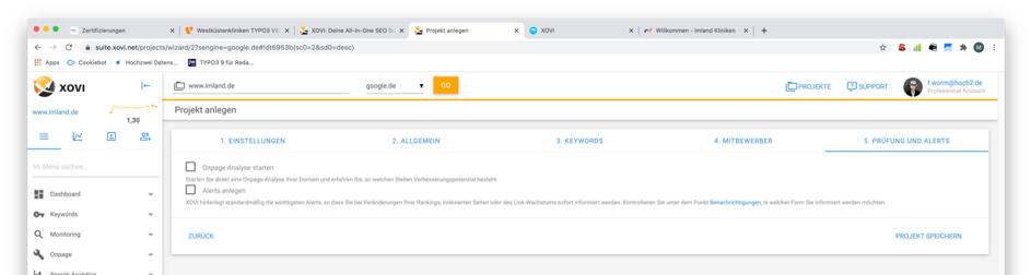 Im Menüband auf Projekte klicken und in der aufgeklappten Liste auf „+ Projekt anlegen“