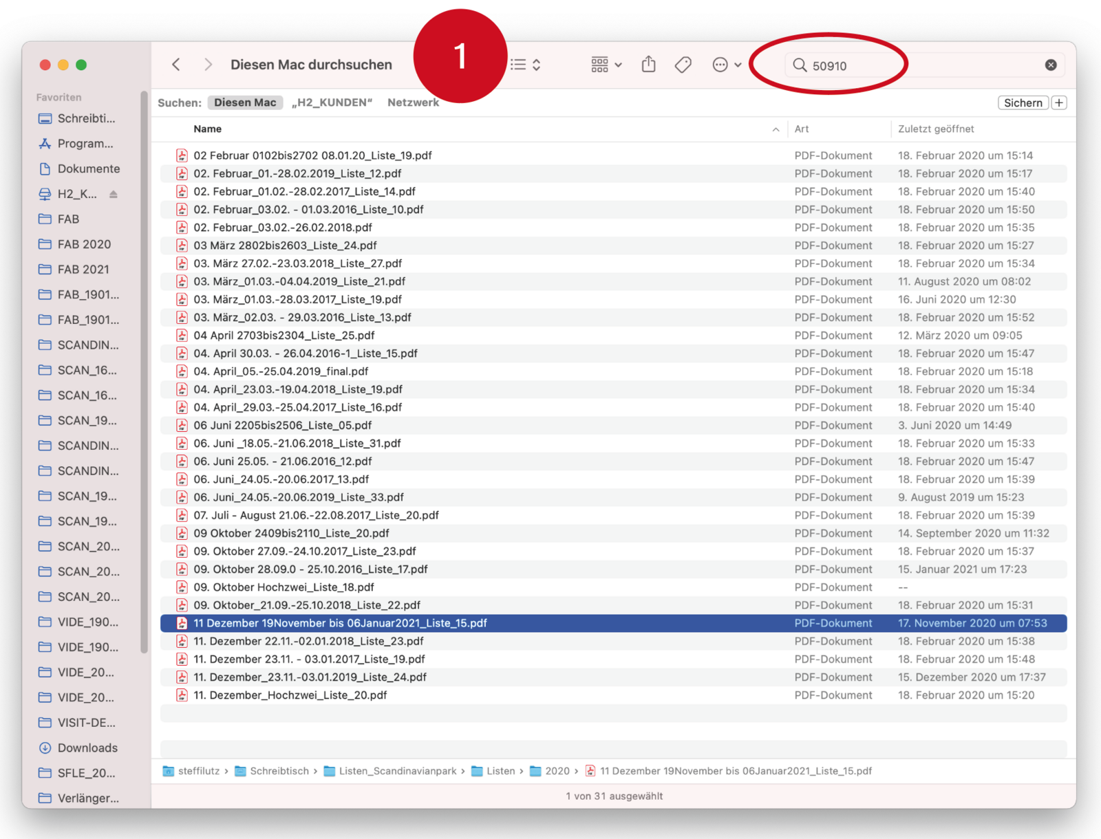 Da die Suche in Textdokumenten auf dem Server nicht funktioniert, ist es sinnvoll, alle Listen auf den Desktop zu speichern.