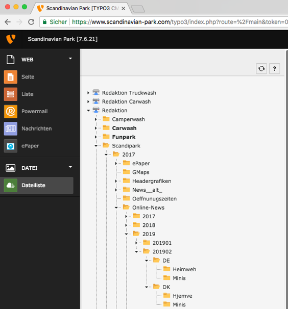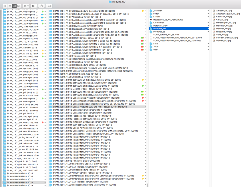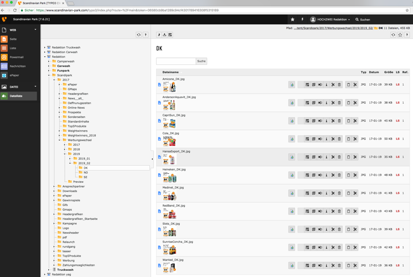 Für alle drei Bereiche werden Grafiken zur Verfügung gestellt. Im ersten Schritt legen wir im Ordner Werbungswechsel -> 2020 einen neuen Monatsordner mit drei Unterordnern (DK, NO, SE) in der Dateiliste an. Auf die erste Ebene legen wir die Prospektgrafiken DE und DK sowie die Headgrafiken DE, DK und NO/SE.